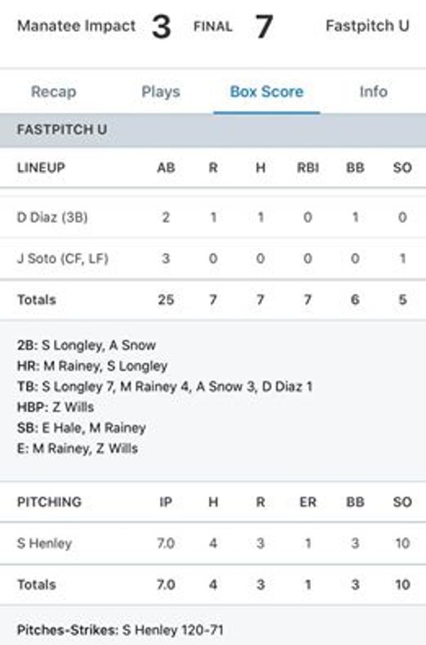 Fastpitch U will report to Sararsota, Florida on June 12 for a great summer opportunity. The 30 game schedule will end July 21. We have a couple of roster spots available.